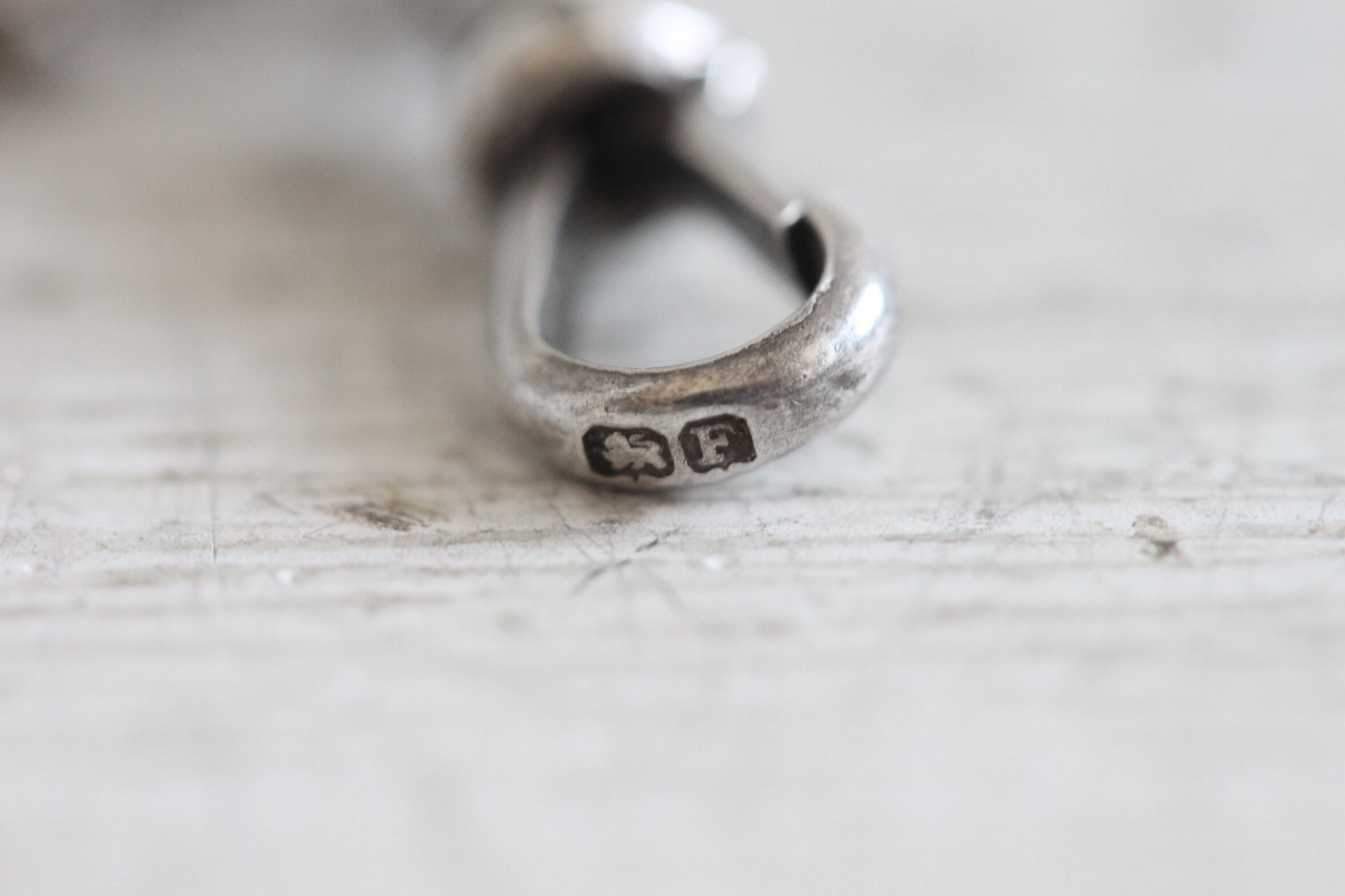 地金は純銀製。フック部分にホールマークあり(1930年バーミンガム製)