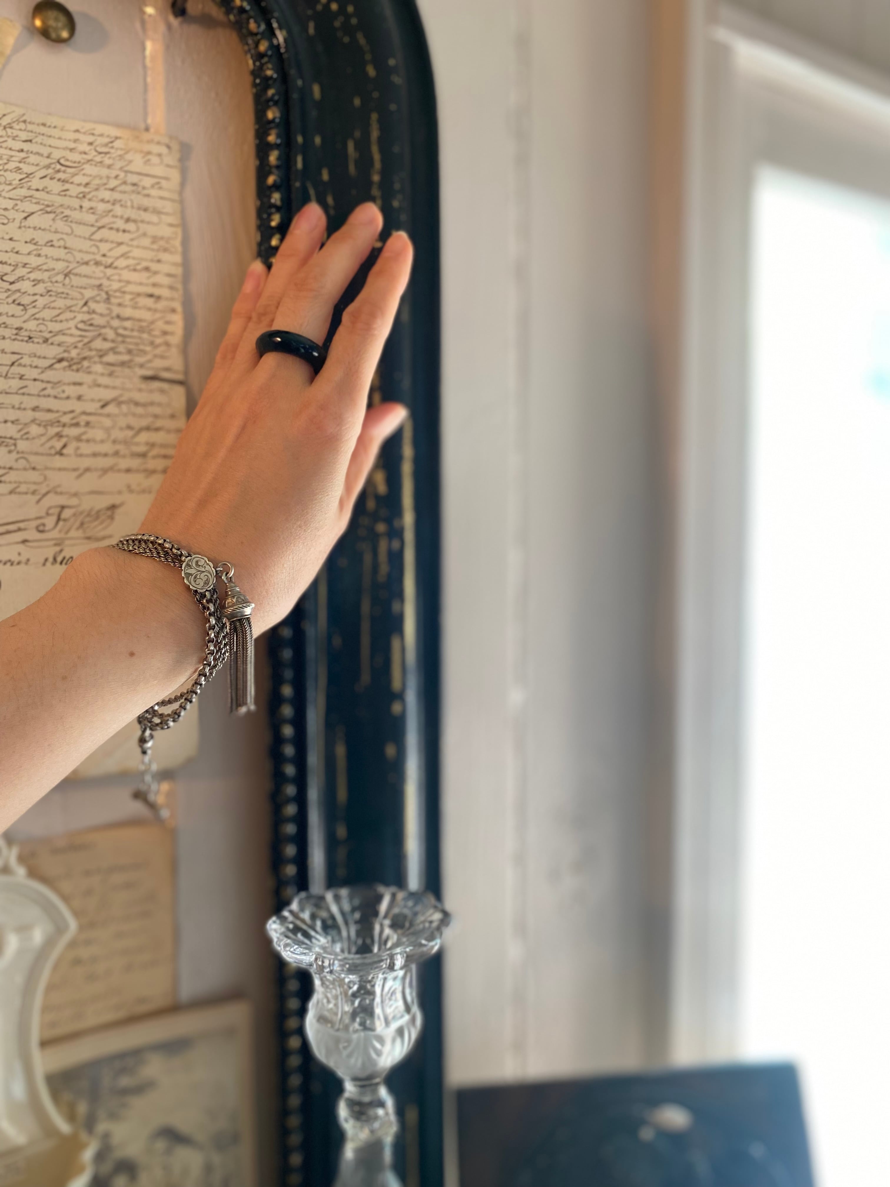 アルバートチェーンとしてはもちろん、キーチェーンのようにバッグに提げたり、ブレスレットとしても使えます。