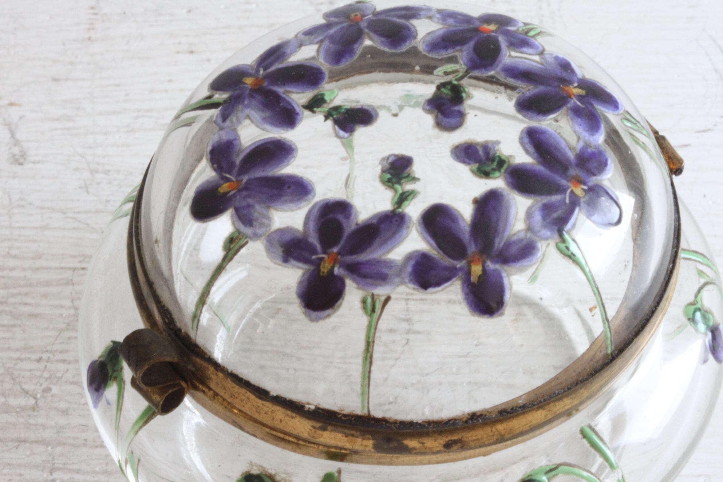 可憐なすみれが描かれたエナメル絵付けのガラスボックス。