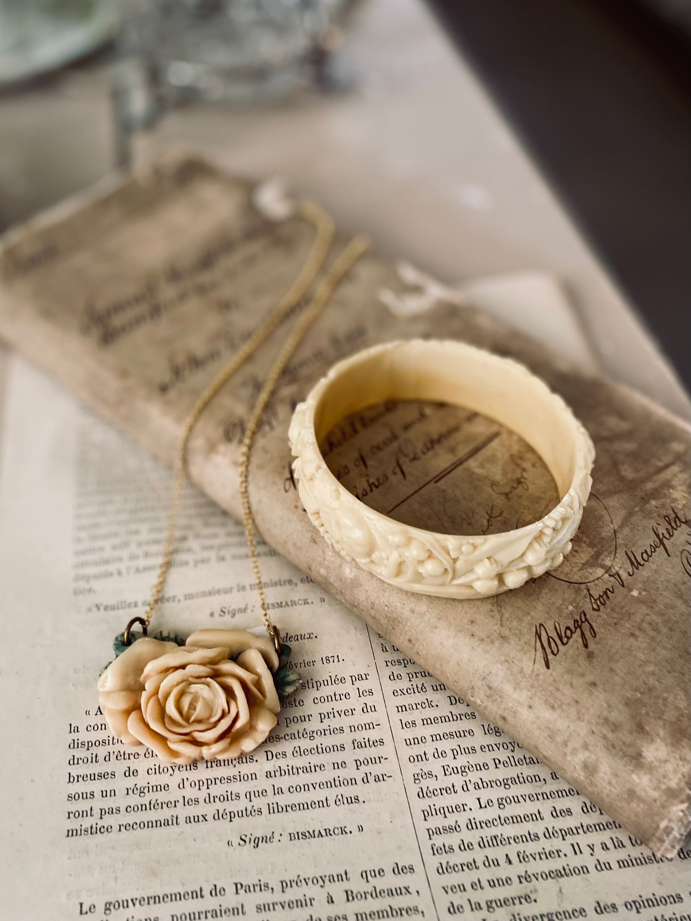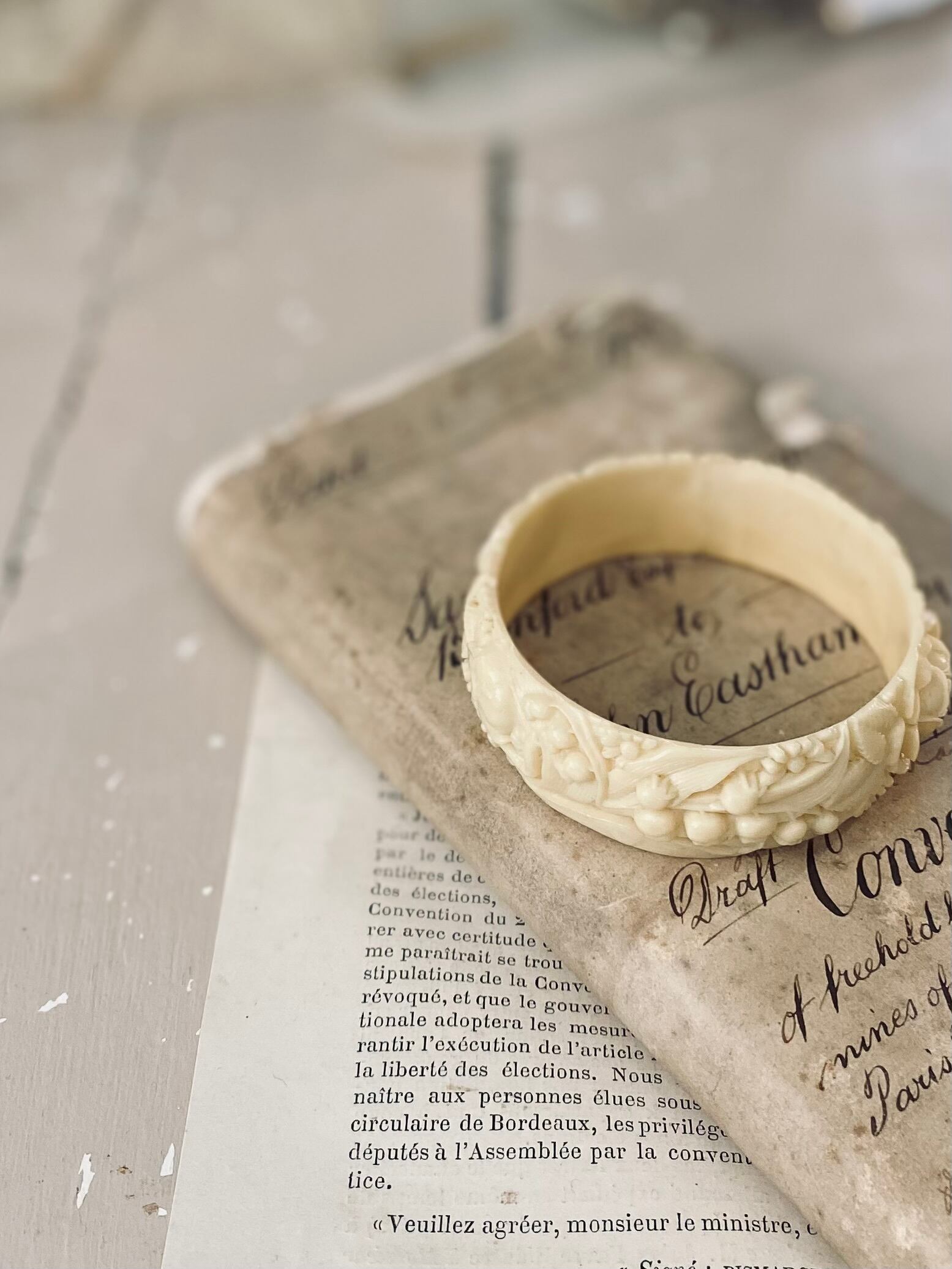 スズランやローズをギュっと詰め込んだ華やかなバングル。