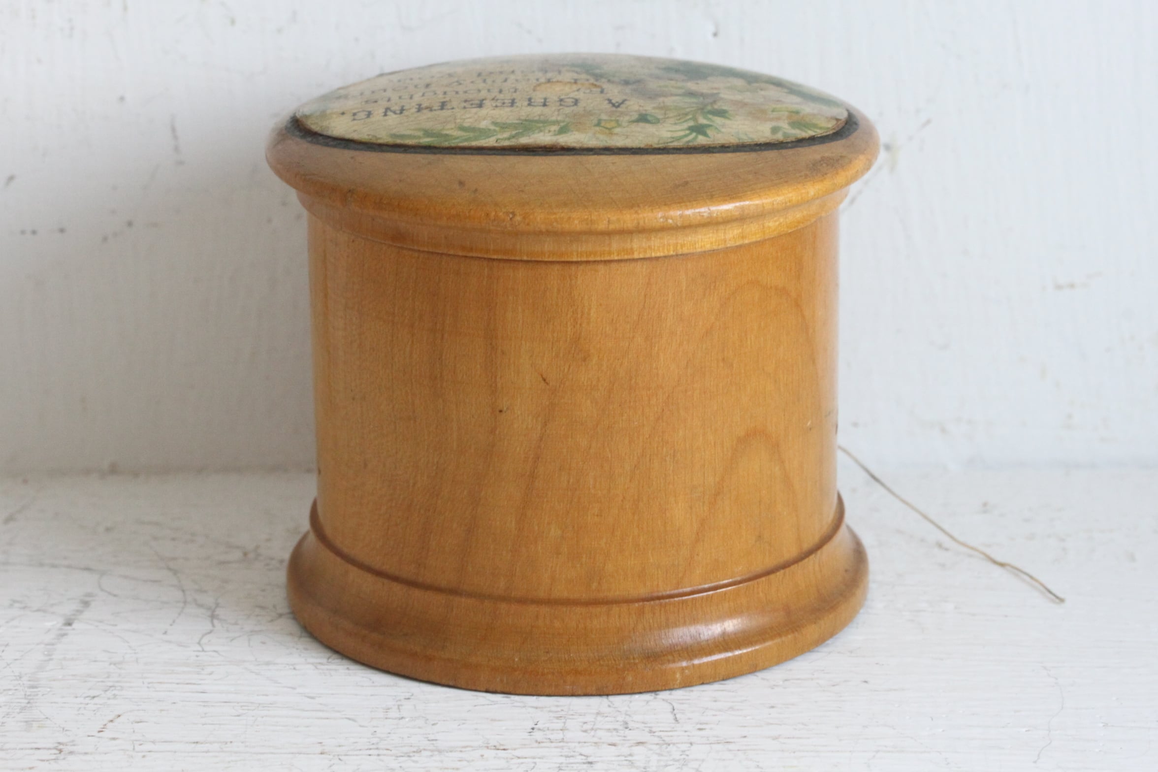 1900年代初頭のお品でトップには花柄のデコパージュが施されています。