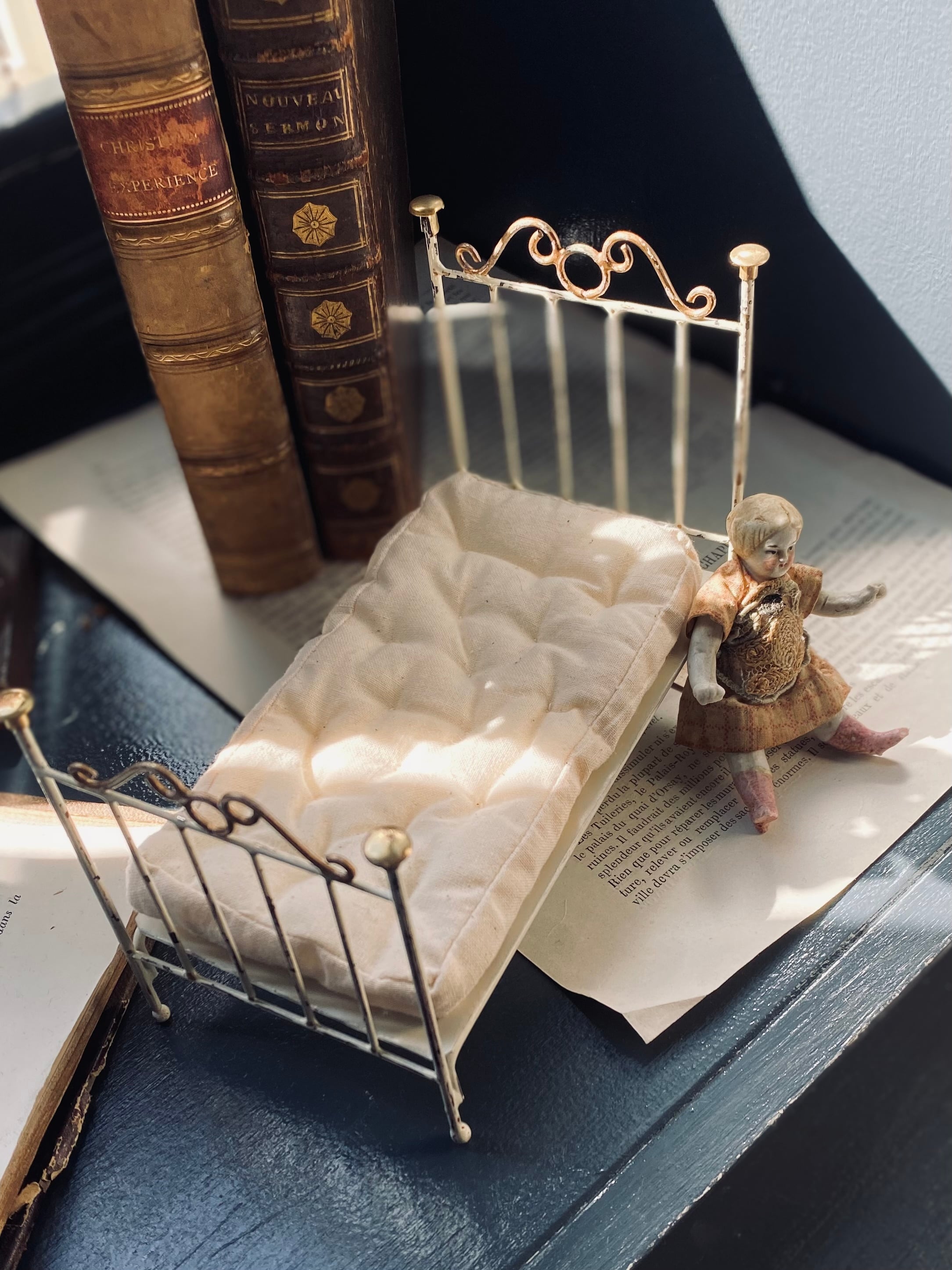1/12 サイズのアイアンベッド。マットもセットになっています。
