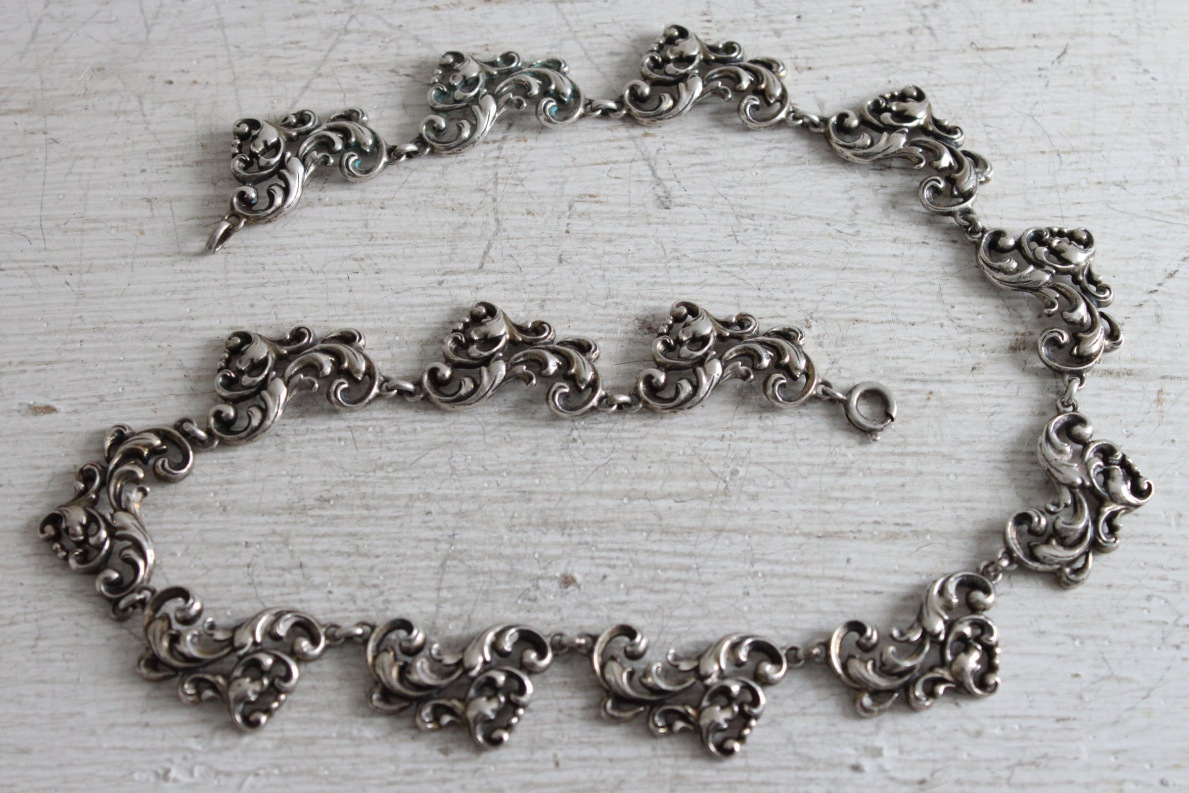 ロカイユレリーフが見事な1900年代初頭のSilverネックレス。