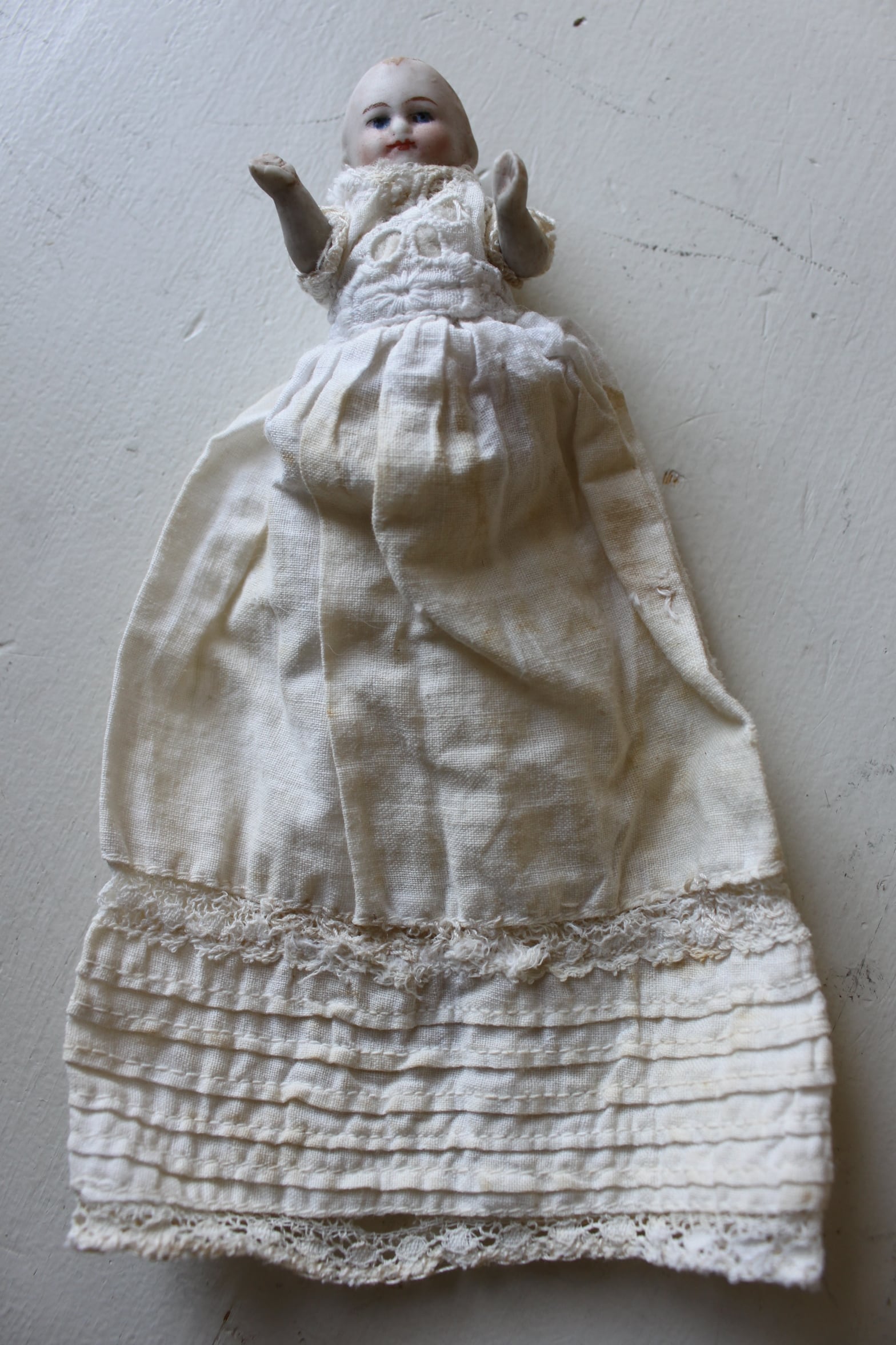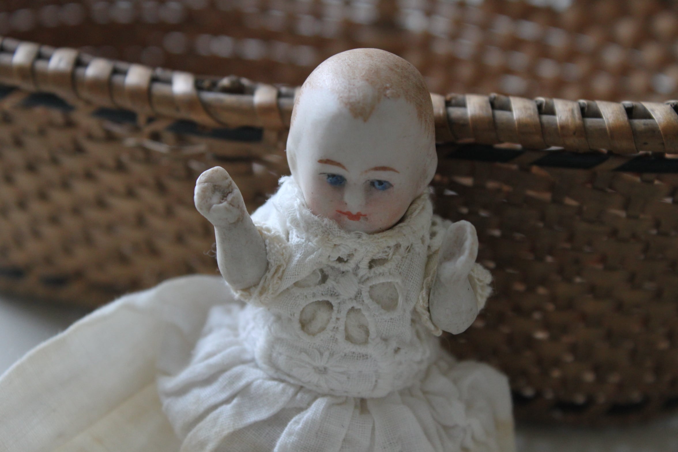 ドールはオールビスク製で手足はジョイント式で稼働可能です。