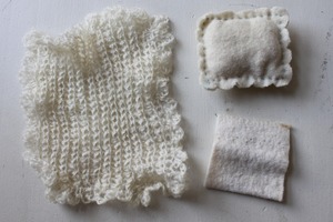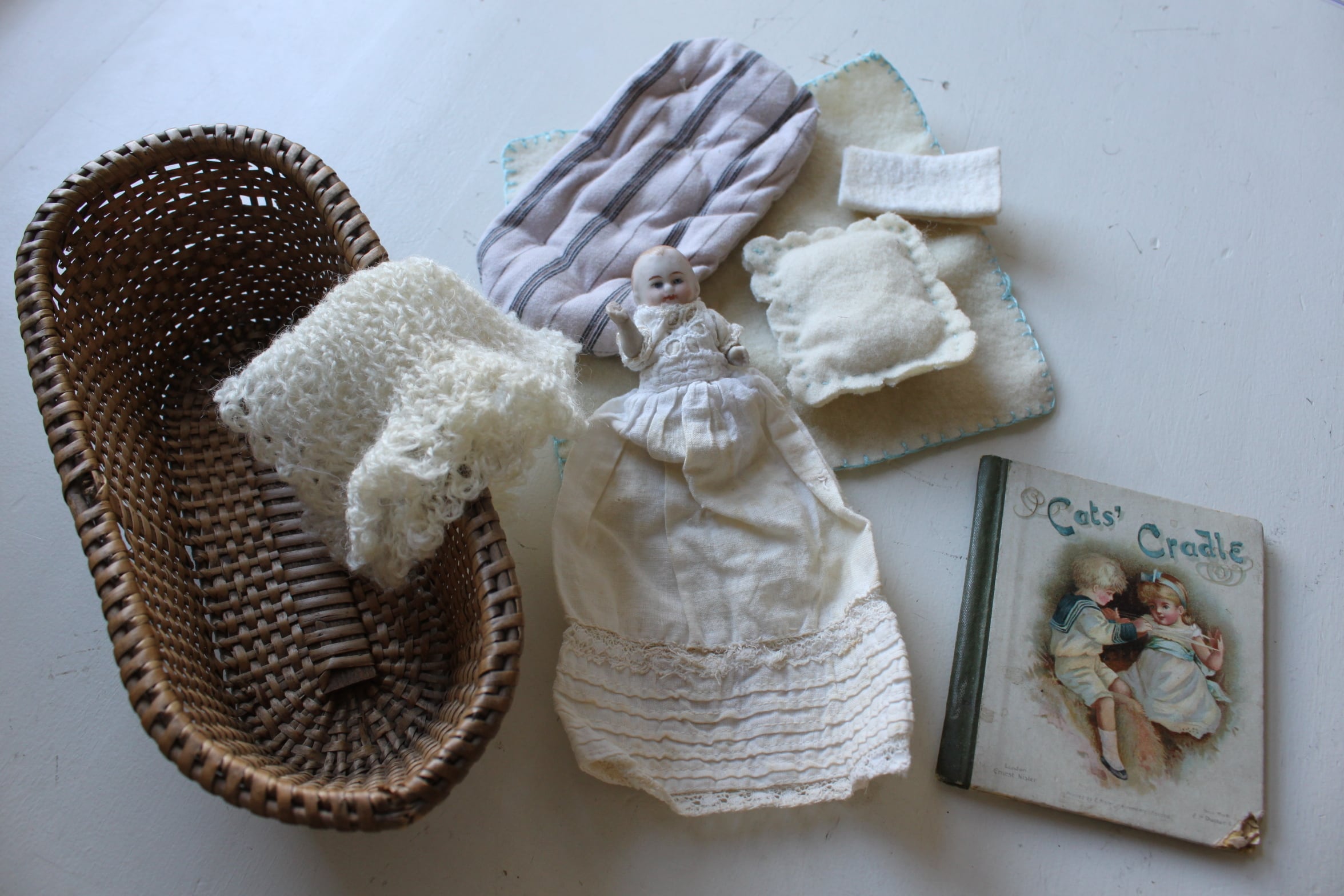 美しいパニエ編地のベッドにクッションとブランケット2枚もセット。