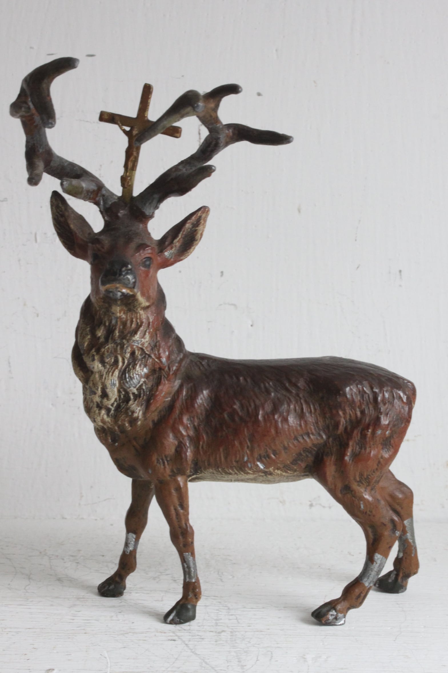 凛とした立ち姿に立派な角と十字架、神聖さを纏った美しい鹿のフィギュアです。