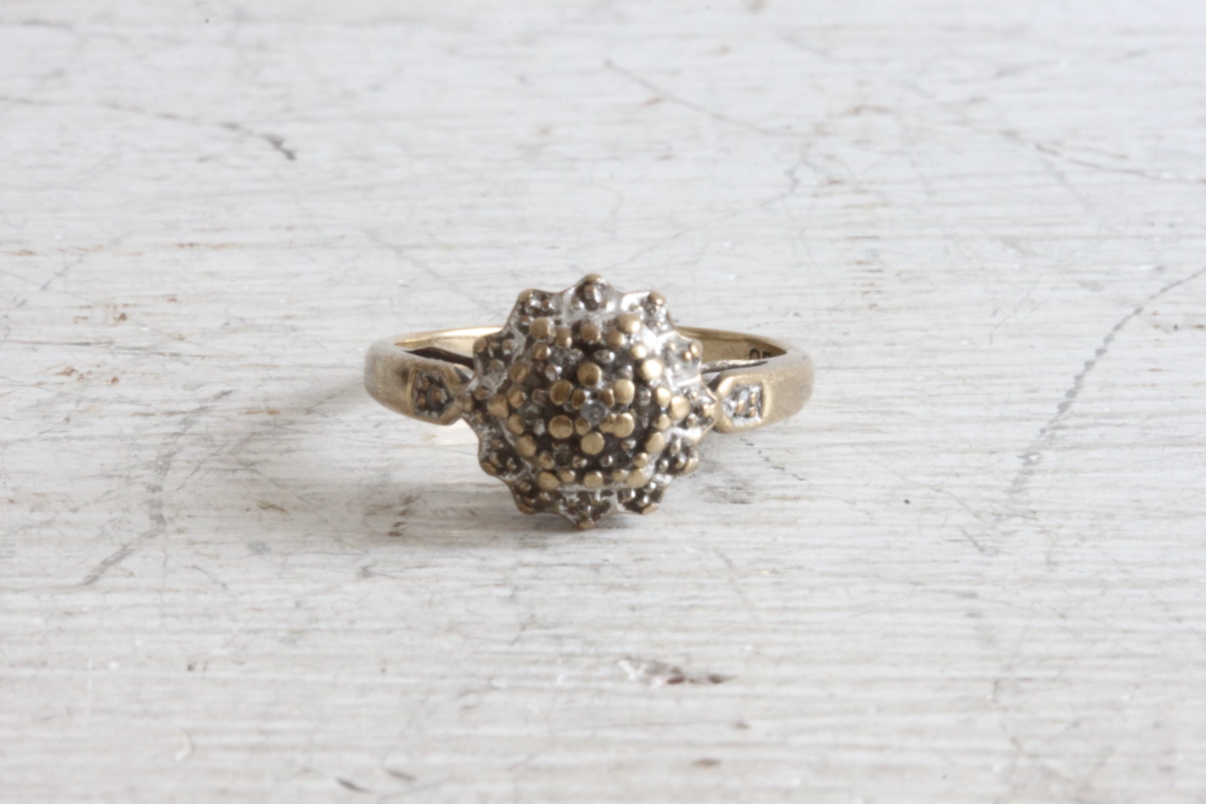 トップに7石、シャンクに左右2石のダイヤがセッティングされています。