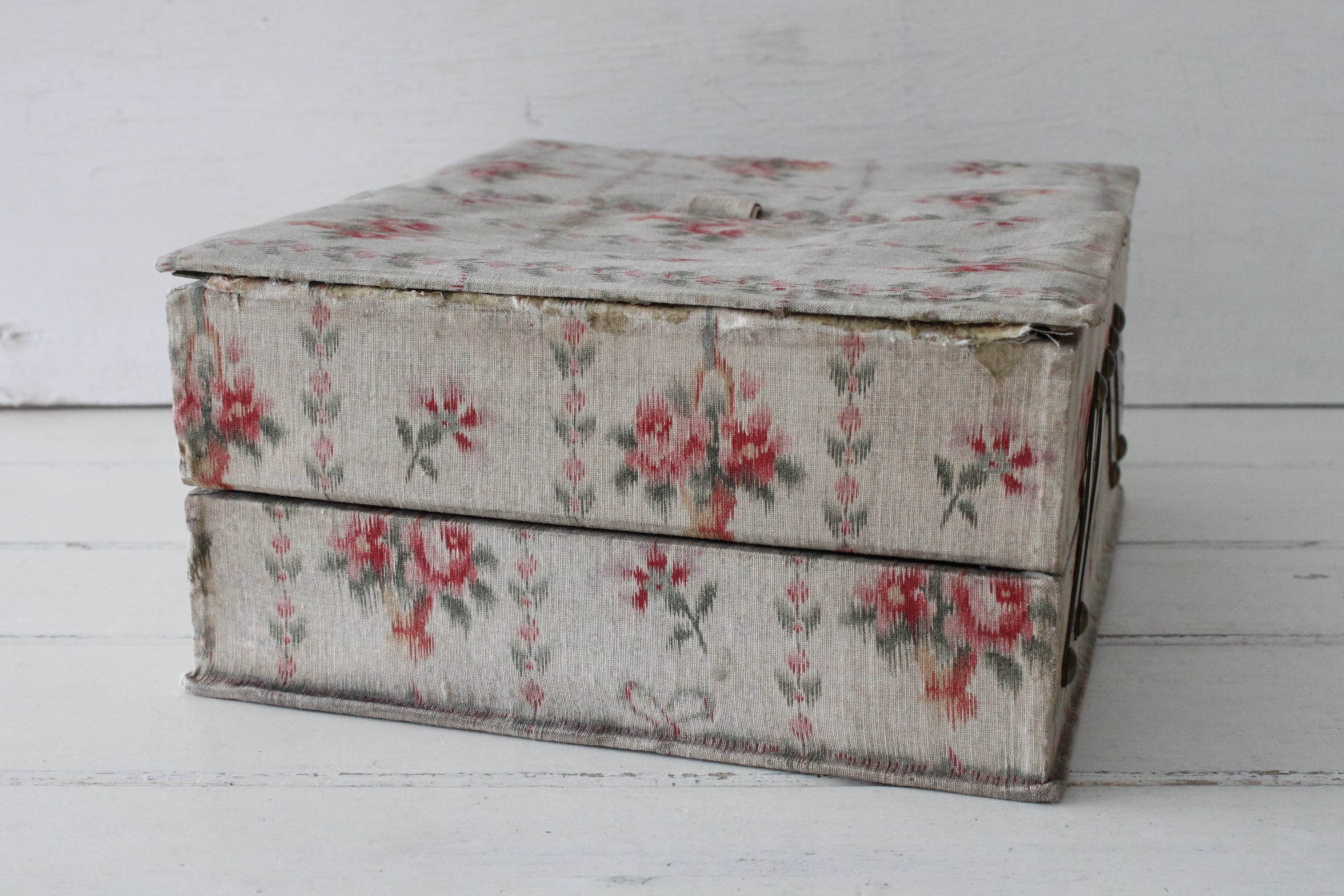 希少なタイプのカルトナージュのソーイングボックス。