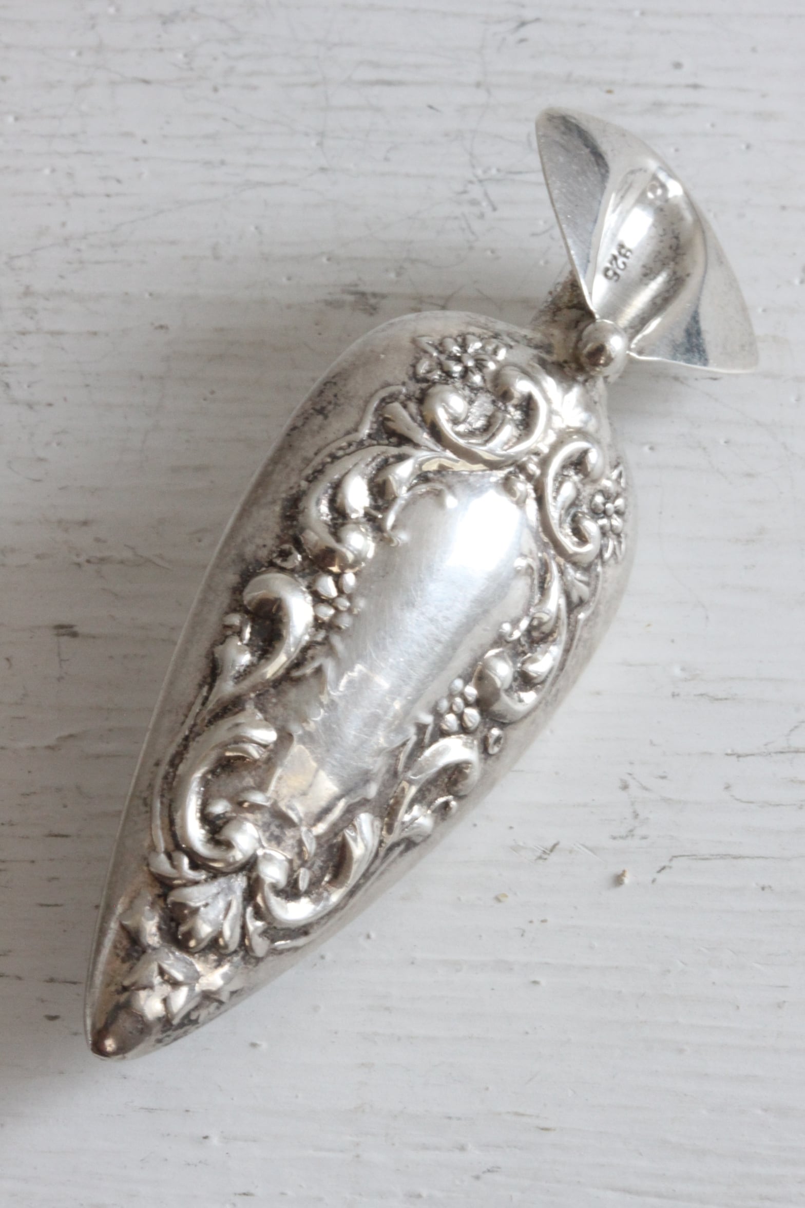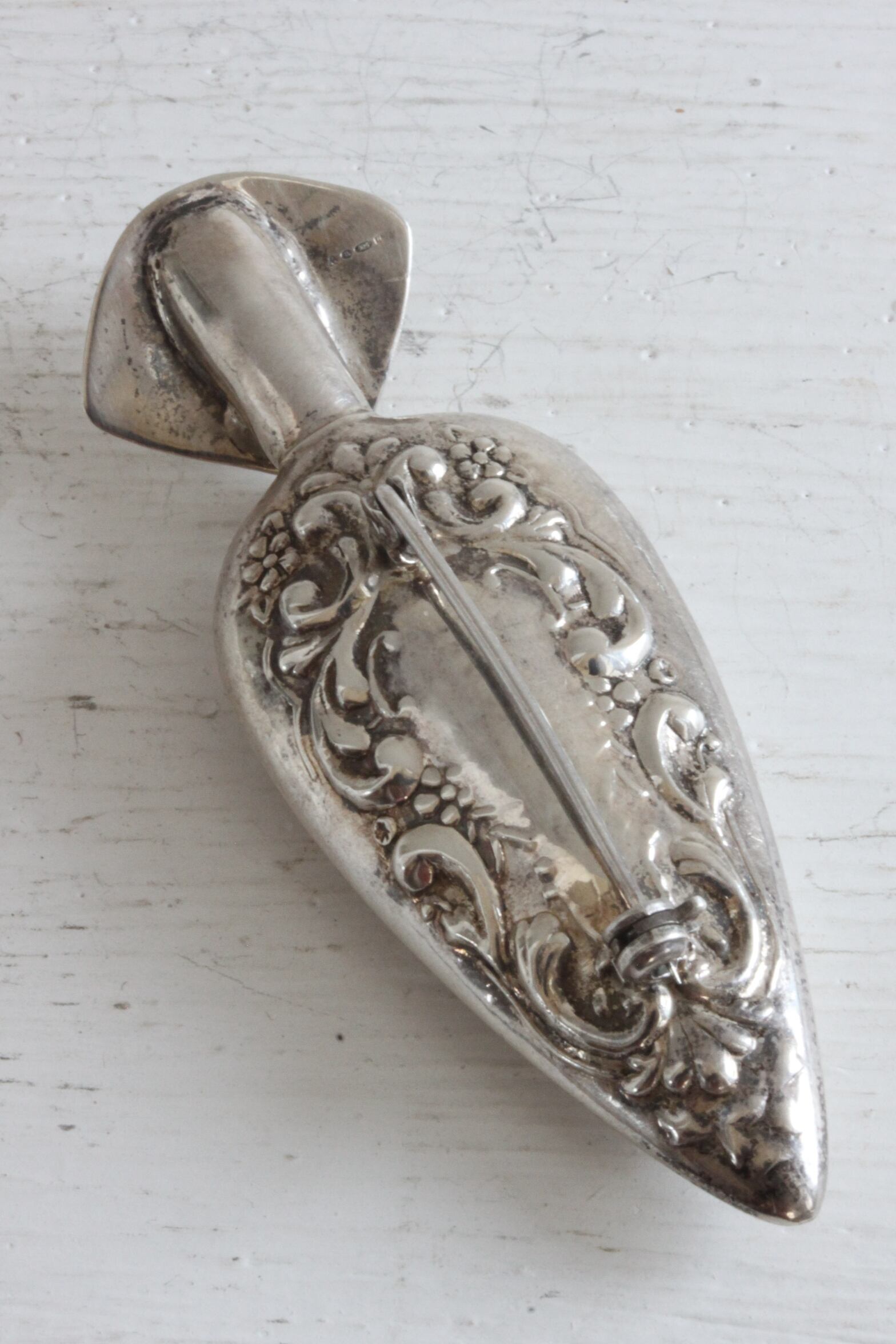 こちらは "posy holder brooch" と呼ばれるお品で「小さな花束を挿して身に着けるためのブローチ」です。